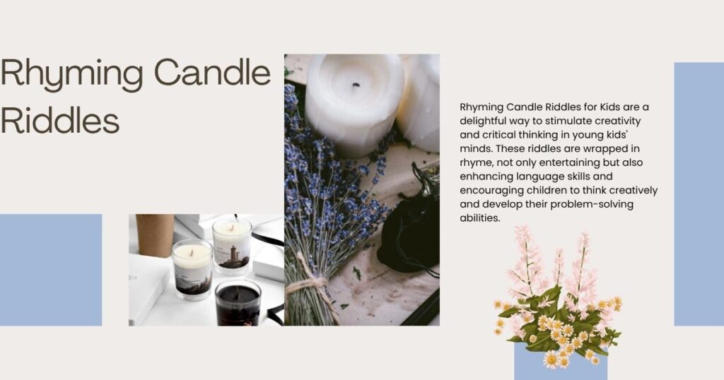 Rhyming Candle Riddles for Kids are a delightful way to stimulate creativity and critical thinking in young kids’ minds. These riddles are wrapped in rhyme, not only entertaining but also enhancing language skills and encouraging children to think creatively and develop their problem-solving abilities.